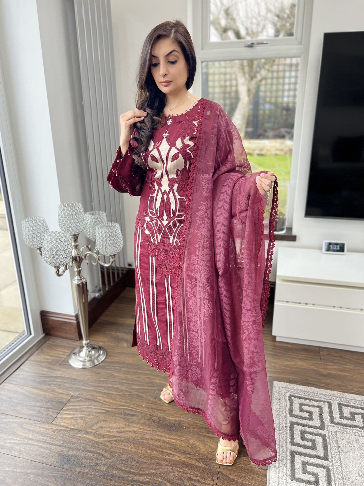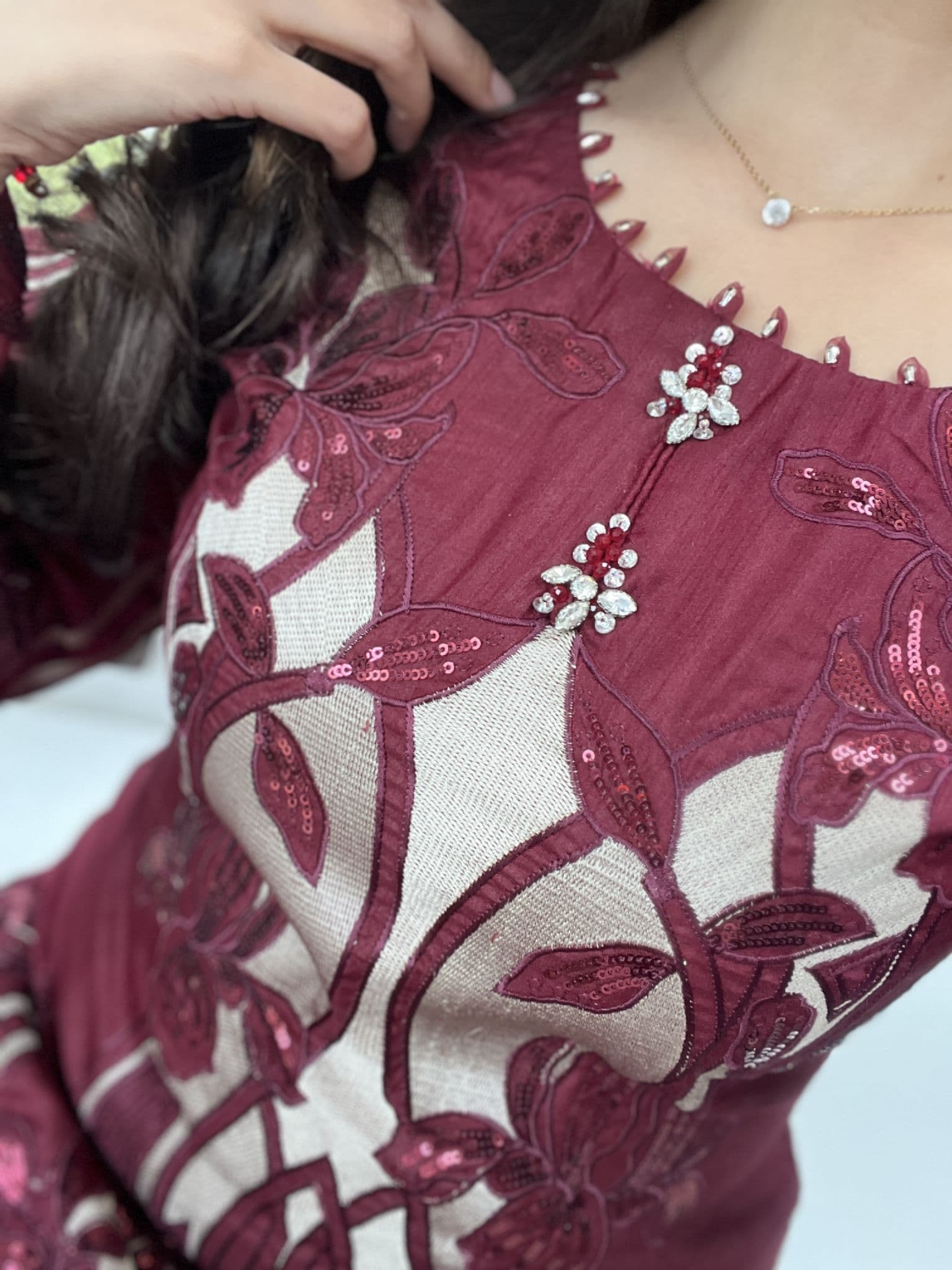 Maria B raw silk suit : maroon