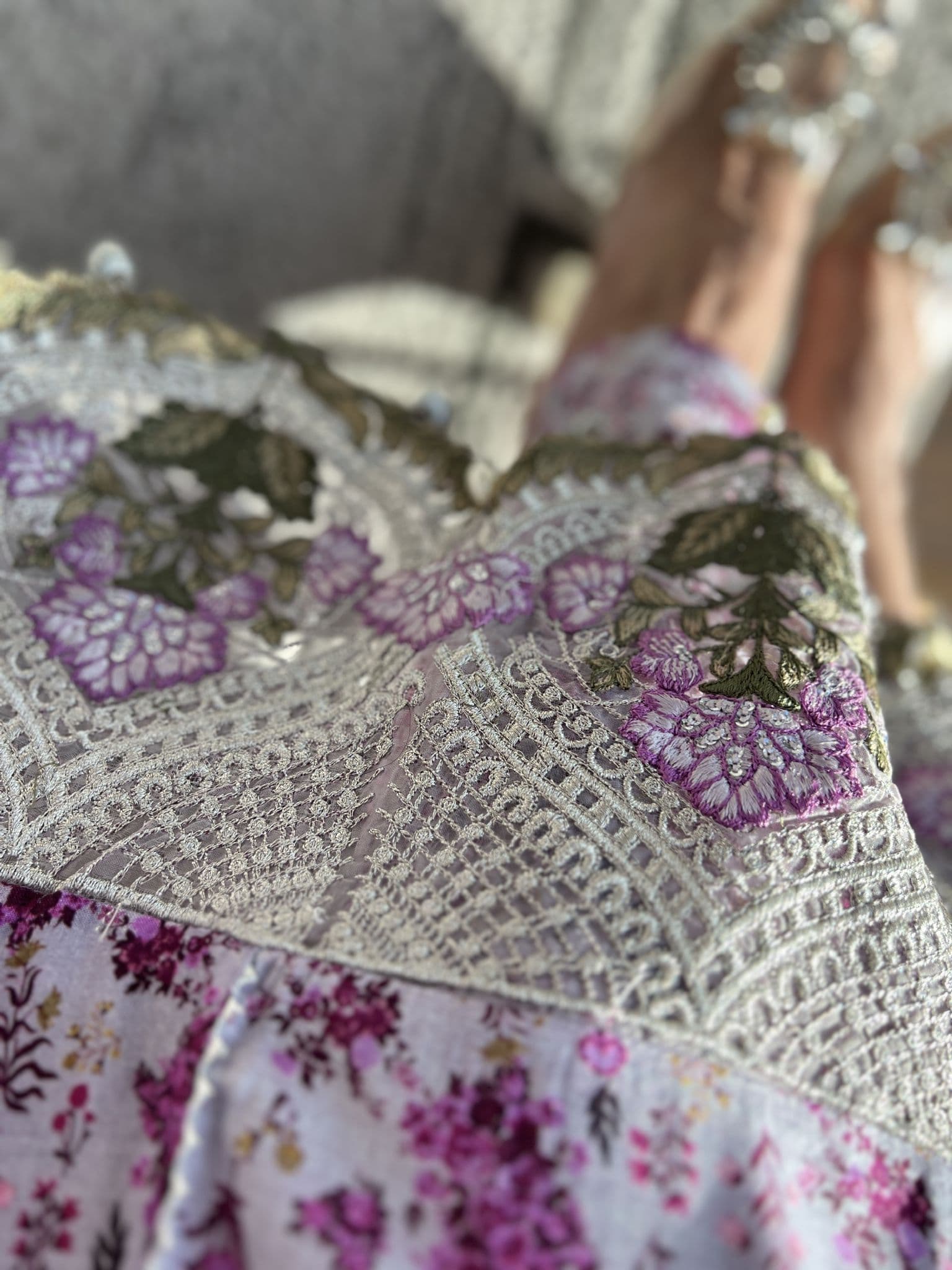 Bodice Kaneez with thread work and silver Zari embroidery.